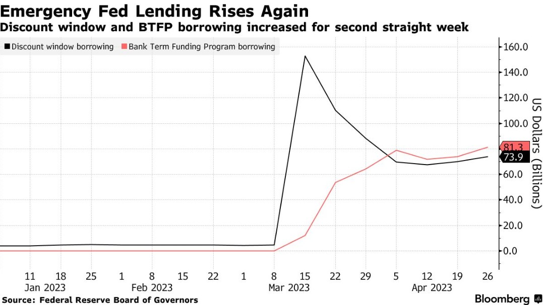 值得一提的是,贴现窗口是美联储为银行提供的最古老的流动性支持。与此新流动性工具BTFP于3月12日启动,此前美联储在加州硅谷银行和纽约签名银行破产后宣布进入紧急状态。