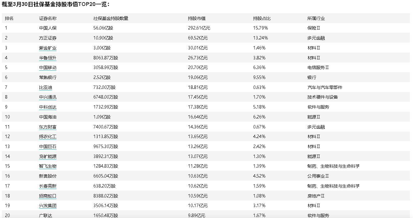 此外,据统计,社保基金连续持仓超2年的29只个股中,从去年四季度末社保基金持股量来看,紫金矿业、常熟银行、中国巨石等持股数量居前,社保基金分别持有00亿股、52亿股、96730万股。社保基金持股比例居前的有常熟银行、和而泰、中科创达等,持股比例分别为55%、76%、18%。