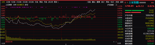 在此期间,早盘一度大跌超1%的A股迎来绝地反击。保险、券商、银行三大板块集体发力,并带动“中特估”板块集体飙升。配资公司融资融券,港股市场也被带飞,A50更是直接拉升。利好究竟有多大呢?